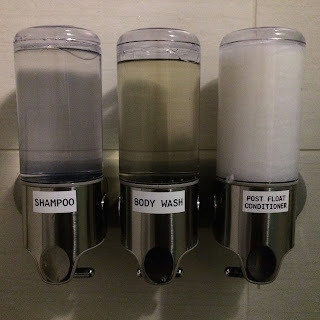 You have one hour. You'll want to luxuriate in your shower but I say don't linger. Get yourself clean then get into the 94 degree water. Adjust the lights the way you want them. You can have low light, high light or complete darkness. I get a little claustrophobic so I chose low light. If you get a lot claustrophobic you can leave the door open between your float tank and your private dressing room.